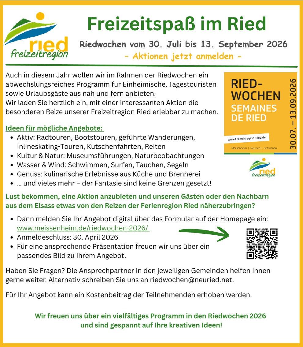 Freizeitspaß im Ried vom 30. Juli bis 13. September 2026