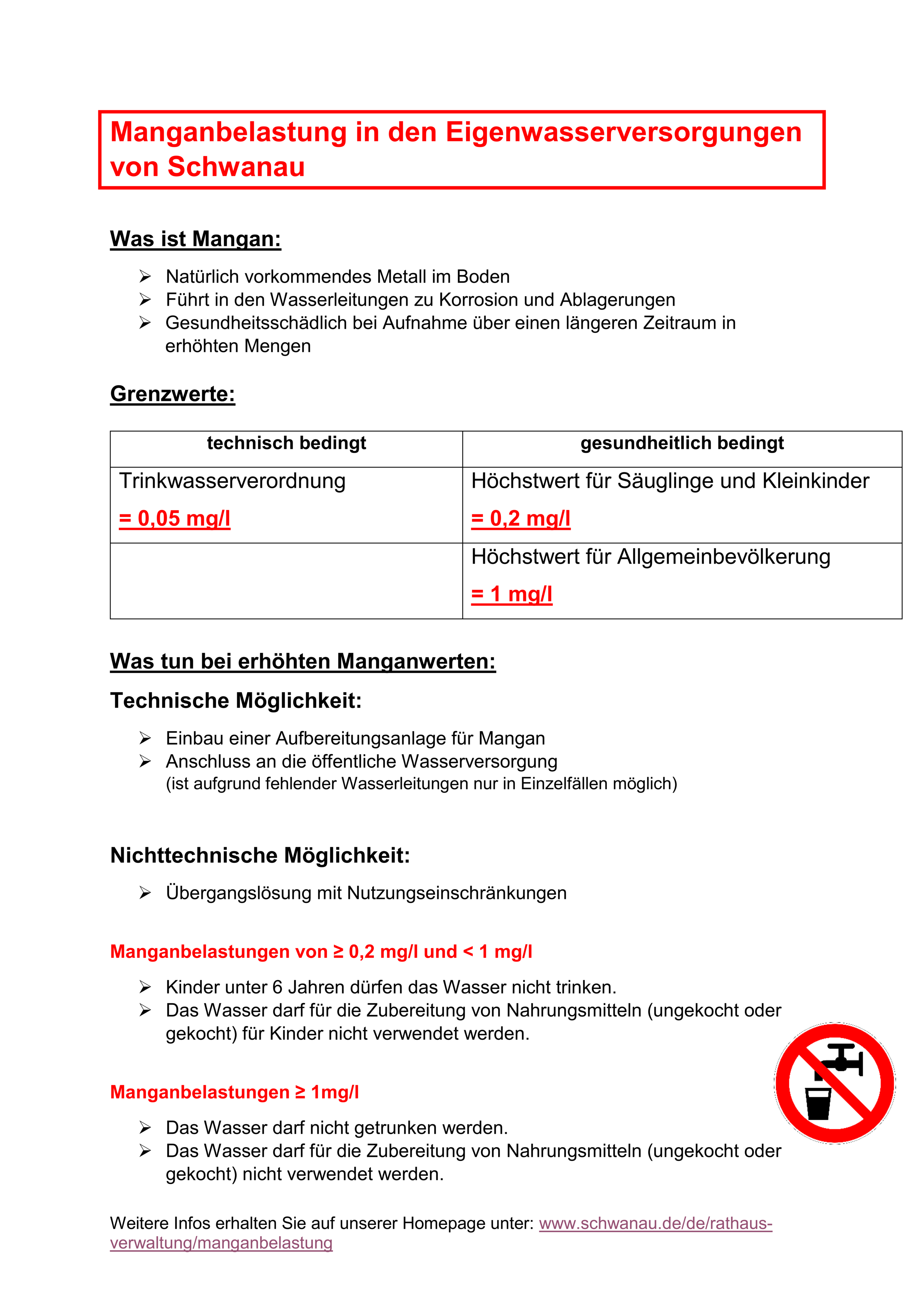 Hier erhalten Sie Informationen über die Manganbelastung in den Eigenwasserversorgungen von Schwanau.